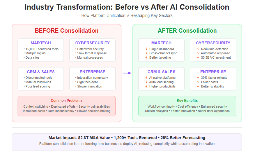 In 2025, the AI space is booming with $2.6 trillion in mergers and acquisitions, signaling a major shift toward aggregated intelligence and platform consolidation. For startups, SMBs, and enterprises alike, this means fewer scattered tools and more seamless, scalable solutions. The proliferation of fragmented solutions—disconnected AI and data management tools—has led to duplicated efforts, data silos, security vulnerabilities, and increased operational complexity.